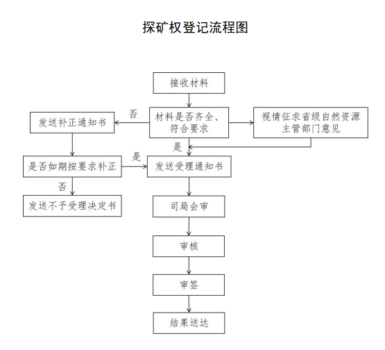自然资源部政务大厅接收申请人报送的探矿权保留、解除探矿权保留申请资料。申请材料齐全、符合法定形式的,或者申请人按照登记管理机关的要求提交全部补正申请材料的,应当受理保留申请。
