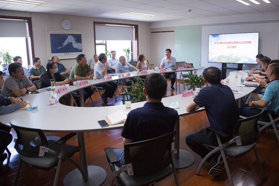 7月9日,国家基础地理信息中心党委理论学习中心组召开扩大会议,进行党史学习教育第三次专题研讨,中心党委书记主持会议,领导班子成员、中国工程院院士陈军、各党支部书记和部门主要负责人20余人参会。