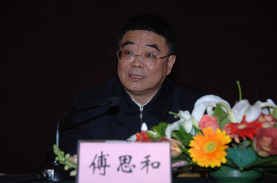 2007年12月25日下午15时,全国县(市)、乡(镇)、村级干部国土资源法律知识宣传教育培训活动电视电话会议在京召开。我部门户网站对会议进行图文直播。图为中央组织部部务委员、组织局局长傅思和讲话。赵洪山 摄