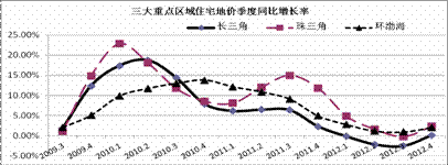 图8 2012年第四季度三大重点区域综合地价增长率(%)