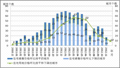 105个城市中住宅用地价格环比持平及下降城市数量统计情况