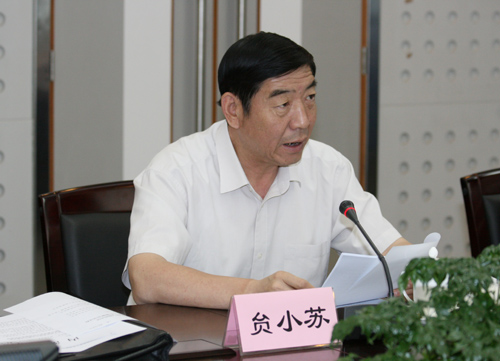 2008年5月30日,全国主汛期与地震灾区地质灾害防治工作视频会议在京召开。图为国土资源部党组成员、副部长贠小苏讲话。(杨征 摄)