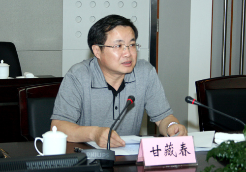 2008年6月10日晚8:00,国土资源部汶川地震恢复重建支持政策视频会议在京召开。图为部党组成员,国家土地副总督察甘藏春主持会议。(杨征 摄)