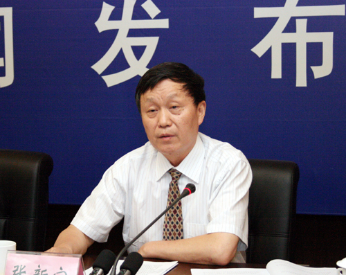 2008年7月8日 9:30,我部召开贯彻实施《违反土地管理规定行为处分方法》、通报二十起典型土地和矿产违法案件查处情况新闻发布会。图为国土资源部执法监察局局长张新宝先生通报10起土地违法案件查处情况。(杨征 摄)