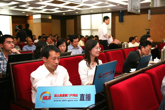 2010年5月20日下午,国土资源部召开全国稀土等矿产开发秩序专项整治行动视频会议。国土资源部门户网站全程进行直播。(陶伟 摄)