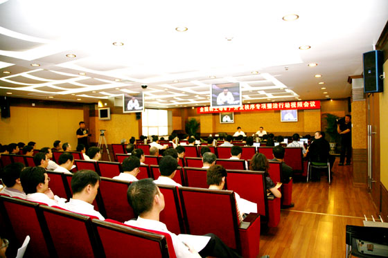2010年5月20日下午,国土资源部召开全国稀土等矿产开发秩序专项整治行动视频会议。图为会议现场。(陶伟 摄)