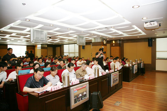 2010年5月20日下午,国土资源部召开全国稀土等矿产开发秩序专项整治行动视频会议。图为会议现场。(陶伟 摄)