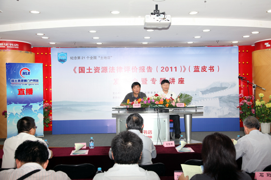 6月23日,《国土资源法律评价报告(2011)》发布会暨专题讲座在北京王府井新华书店举行。(陶伟 摄 于洪奇 编)