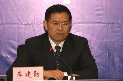 2011年4月18日上午10:00,国土资源部召开新闻发布会通报和挂牌督办违法违规案件。图为国土资源部执法监察局局长李建勤通报违法违规案件。(曹继东 摄 谢敏 编)