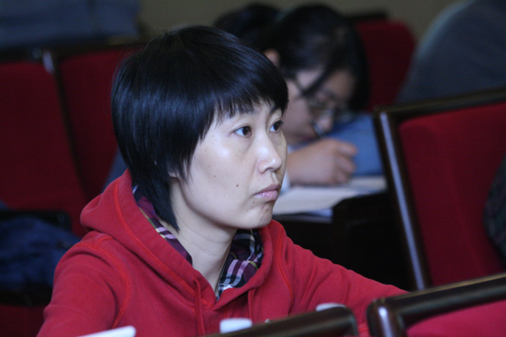 2011年10月25日上午10点,国土资源部举行新闻发布会,公开通报和挂牌国土资源领域违法违规案件情况。图为中央人民广播电台冯会玲提问。(曹继东 摄 于洪奇 编)