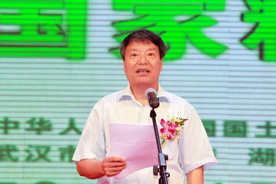 2012年6月25日上午,国土资源部与湖北省人民政府联合在武汉市举办第22个全国“土地日”主题宣传活动。图为国土资源部部长、党组书记、国家土地总督察徐绍史发表第22个全国“土地日”致辞。(于洪奇 摄 谢敏 编)