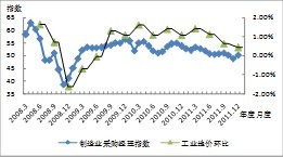 图10 制造业采购经理指数和主要监测城市工业地价增长率(%)