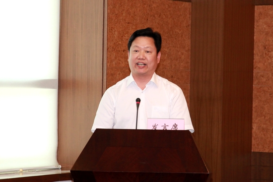 5月24日,国土资源系统政务服务窗口“四级联创齐争、打造满意窗口”座谈会召开。图为湖北省咸宁市国土资源局局长皮凌发言。他介绍了该局“四级联创齐争、打造满意窗口”活动的开展情况。一是营造“联创”氛围,强化服务意识。二是坚持“满意”标准,规范服务行为。三是突显“五网”核心,创优服务平台。四是落实便民措施,优质服务社会。五是开展争创活动,提升服务能力。(赵心浩 摄 杨征 编)
