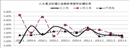 图5 2011年第4季度三大重点区域综合地价增长率(%)