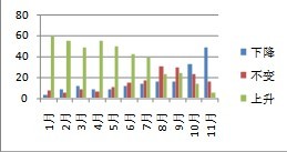 图14 2011年七十个大中城市住宅销售价格增减的城市个数