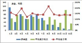 在适度放松的货币政策下,部分城市房屋成交量的回升在一定程度上刺激了土地市场预期。2012 年上半年,针对宏观经济增速放缓的趋势,央行继2月和5月两次下调法定存款准备金率后,又3年来首次下调金融机构人民币存贷款利率0.25个百分点,流动性得到一定程度释放。5 月末,广义货币(M2)余额90 万亿元,同比增长13.2%;人民币贷款余额58.72 万亿元,同比增长15.7%;5 月人民币贷款增加7932 亿元,同比增加2416 亿元。在此背景下,1-5月份,全国商品房销售额16932亿元,下降9.1%,降幅缩小2.7个百分点。部分热点城市5、6月份以来再现房屋成交量回升态势,向土地市场传递出短暂的回暖信号。