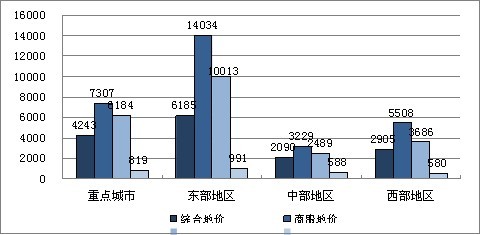 图4 2012年第二季度三大重点区域地价水平(元/平方米)