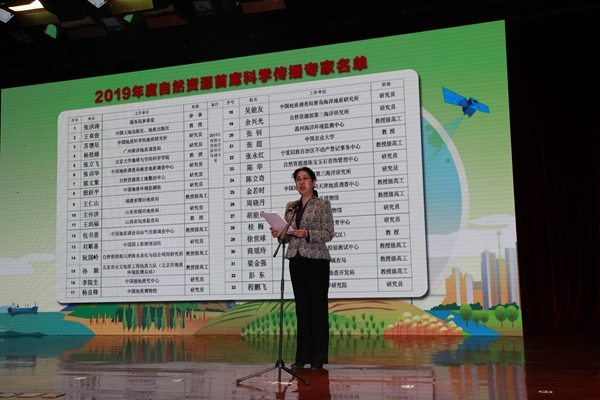 发展司高平司长宣读《自然资源部关于聘任2019年度自然资源首席科学传播专家的公告》和