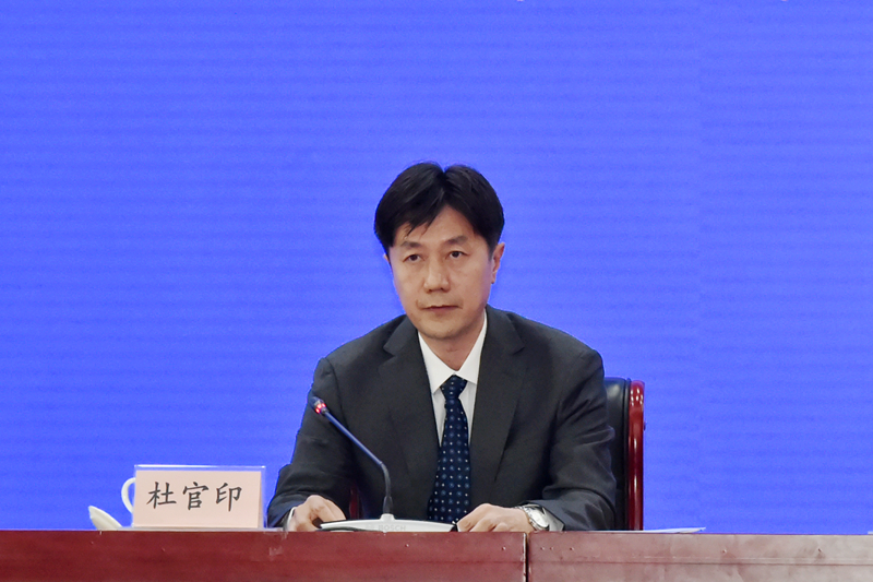 2023年4月12日(周三)下午2点,自然资源部在B503会议室召开4月份例行新闻发布会,图为自然资源部综合司杜官印司长介绍《2022年自然资源统计公报》有关情况。(赵心浩/摄 谢敏/编)