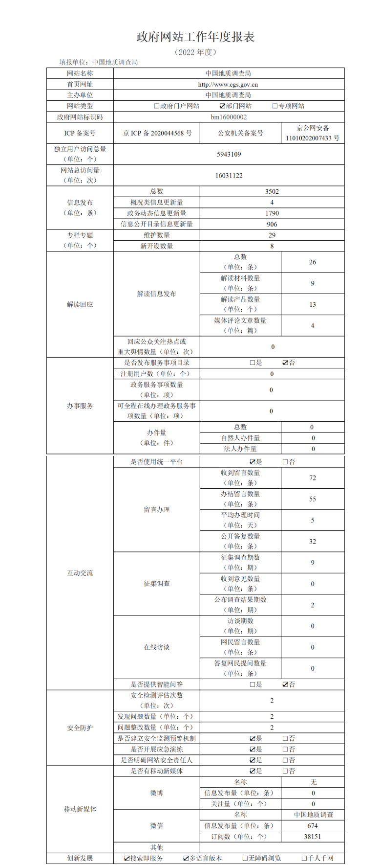 政府网站工作年度报表(中国地质调查局网站2022年度)