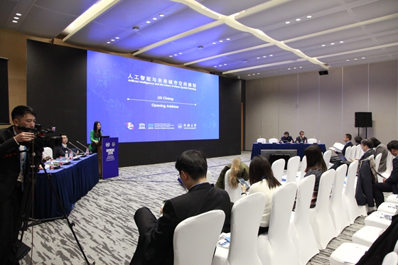 11月19日,联合国世界地理信息大会智慧、韧性与可持续社会分会在浙江德清召开,会议主要探讨“人工智能与未来城市空间规划”。图为会议现场。(侯一俊 摄 陈卉 编)