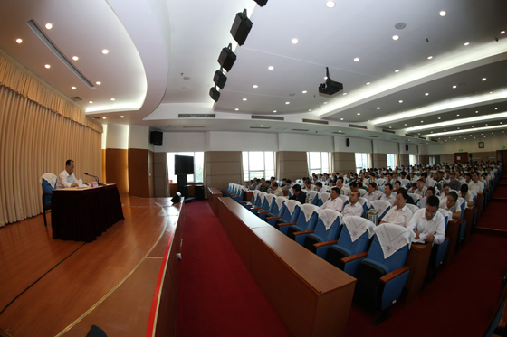 中共中央党史研究室副主任、全国党建研究会副会长高永中做学习遵守党章的专题辅导讲座。(伊日和 摄)
