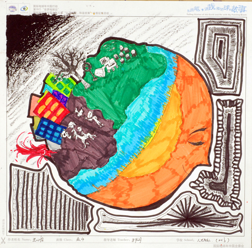 “认识地球、和谐发展”国际地球年中国少年儿童绘画作品:《地球妈妈》。