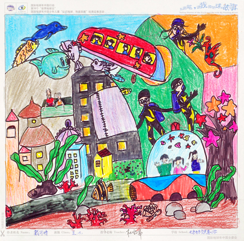 “认识地球、和谐发展”国际地球年中国少年儿童绘画作品:《未来的水下乐园》。