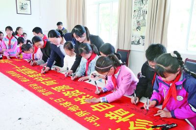4月22日是第49个世界地球日。4月19日,宜兴市国土资源局组织人员来到市堰头实验小学,联合举办“珍惜自然资源 呵护美丽国土——讲好我们的地球故事”主题宣传活动,提高对“人与自然和谐共生、绿色发展”理念的认识。图为学校师生和市国土资源局工作人员代表在宣传横幅上签字。