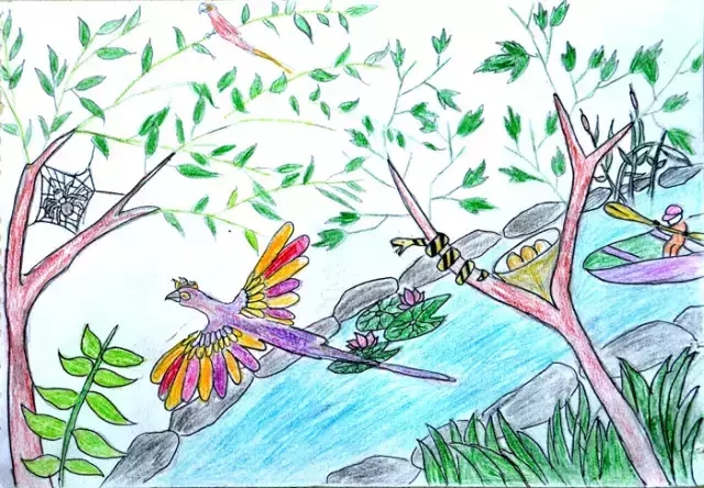 由中国国土资源报社、李四光地质科学奖基金会共同主办的首届“世界地球日”儿童画公益大赛日前落下帷幕。经过一个月左右的时间,共征集作品350余幅,最终评选出18幅少年组和幼儿组一、二、三等奖作品。小朋友们创作的一幅幅色彩鲜艳、构思奇妙的地球日绘画作品,不仅带给我们强烈的视觉冲击,其作品中流露出的对地球家园的关心热爱,对大人们也是鞭策与激励。幼儿组三等奖《地球古今》 潘汇文 绘