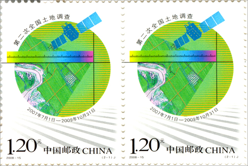 《第二次全国土地调查》纪念邮票,共一套2枚。邮票采用简练的设计手法,将卫星遥感以及地面测量等科学手段与影像图形相结合,直观,准确地表达了第二次全国土地调查的主题。