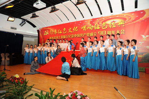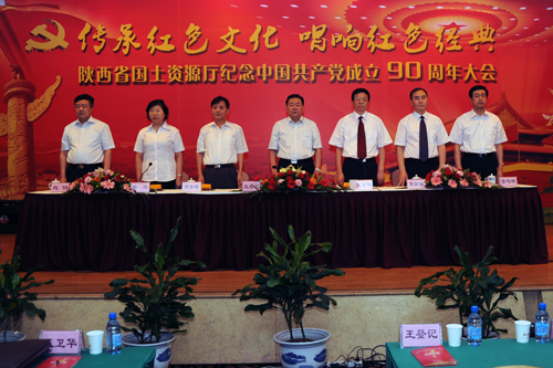 6月24日,陕西厅在西安举行以“传承红色文化,唱响红色经典”为主题的庆祝中国共产党成立90周年活动,同时在榆林市神木县举行纪念6.25全国土地日大型公益文艺晚会。厅机关及直属事业单位各党支部在西安参加了庆祝建党90周年红歌比赛,参加演出的达360多人。演出前,厅党组表彰了先进党支部、优秀党务工作者和优秀党员。厅党组书记厅长、王登记发表了庆祝建党90周年的重要讲话。他重温了中国共产党走过的光辉历程,要求大家要正确研判形势,增强做好国土资源工作的责任感和紧迫感,积极发挥党员模范作用,努力开创机关党建工作新局面。通过红歌比赛演唱,陶冶了情操,进一步坚定了实现共产主义的理想和信念。