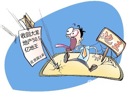 北京国土局收回大龙地产50.5亿地王中新社发漫画中国作