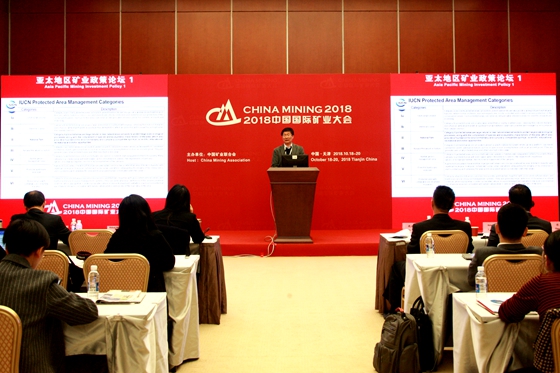 2018年10月18日-20日,2018中国国际矿业大会在天津市梅江会展中心召开。图为亚太地区矿业政策分论坛现场。(于洪奇 摄 谢敏 编)