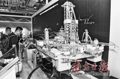 海博会上展出的蓝鲸1号钻井平台模型。本栏摄影:南方日报记者 肖雄