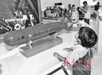 走进海博会的展厅,新中国成立70周年海洋经济成就展是本届博览会当之无愧的主角。展馆建筑以白色为主色调,蓝色光带贯穿其中,就像形态优美的波浪,与海洋经济的主题相互契合。由中国自行设计、自主集成研制的蛟龙号载人潜水器陈列其中,等待与蛟龙号合影留念的观众已经排起了长龙。