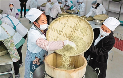 在招商引资而来的脱贫加工厂里,搬迁进城人员正在工作。